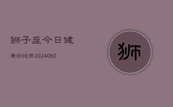 谈到狮子座今日健康的运势,很多人想了解狮子座健康运势今日预测,很多人想知道狮子座今日运势健康方面,此外,不少人想要了解狮子座今日健康运势如何,让我们详细解读一下狮子座今日运势健康指数,请花一点时间仔细阅读2024年06月04日狮子座今日健康运势详解吧!